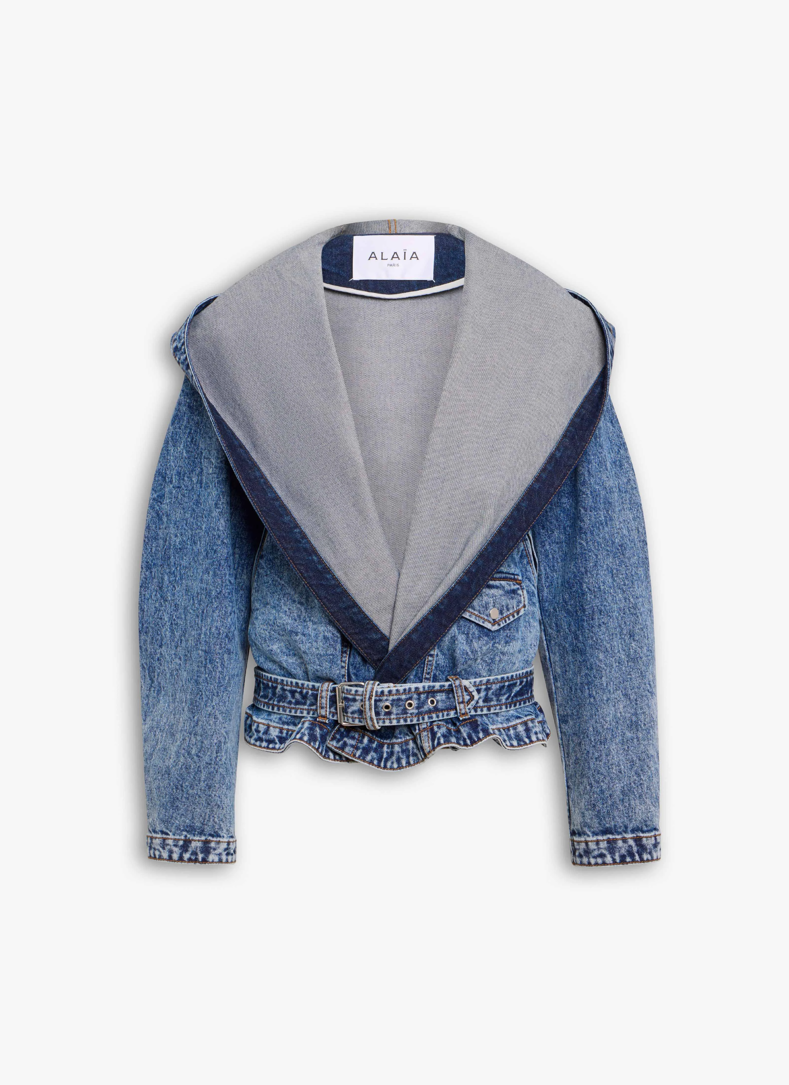 Hooded biker jacket in snow denim Full-coverage hood, shawl collar, integrated belt, zipped pockets Relaxed fit Made in Italy DETAILS MAIN MATERIAL : 99% COTTON 1% POLYURETHANE PRODUCT REFERENCE : AA9V0428T535B - 524