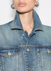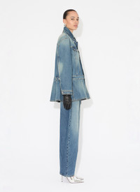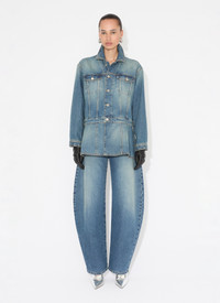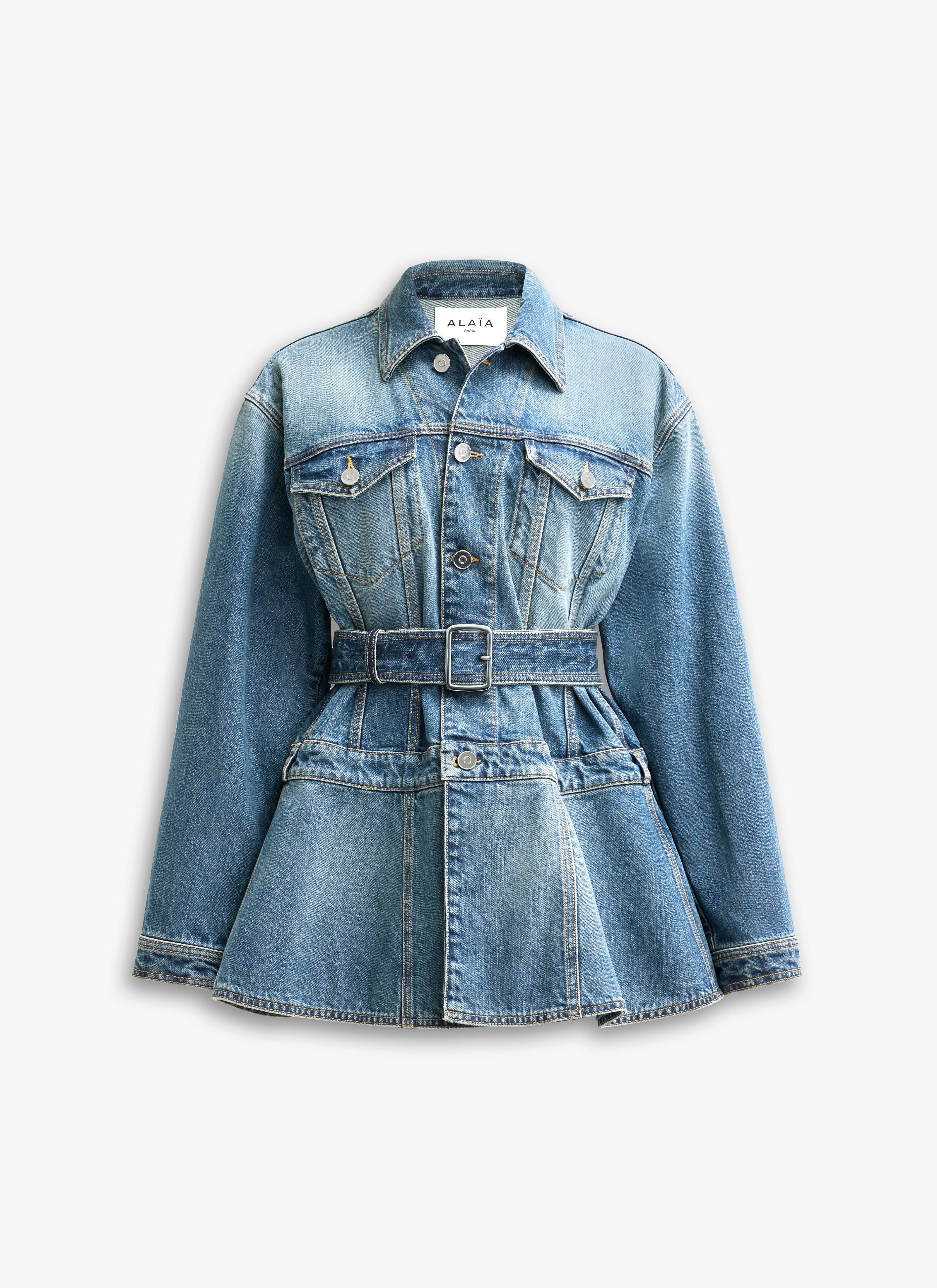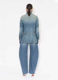Faded blue denim peplum jacket Fitted cut Removable belt, contrasting topstitching, metal buttons Made in Italy DETAILS COMPOSITION: 99% COTTON, 1% POLYURETHANE POCKET LINING: 65% POLYESTER, 35% COTTON PRODUCT REFERENCE: AA9V0422T536A - 525
