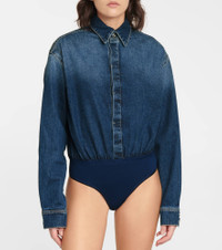 Alaïa elevates laid-back workwear with this shirt bodysuit. It's made from ombré-faded cotton denim with supportive jersey briefs. - material: 99% cotton, 1% polyurethane - material II: 72% viscose, 15% polyamide, 10% polyester, 3% elastane - care instructions: machine wash at 30 degrees - buttoned front - Made in Italy - buttoned cuffs - Designer colour name: Bleu Jeans