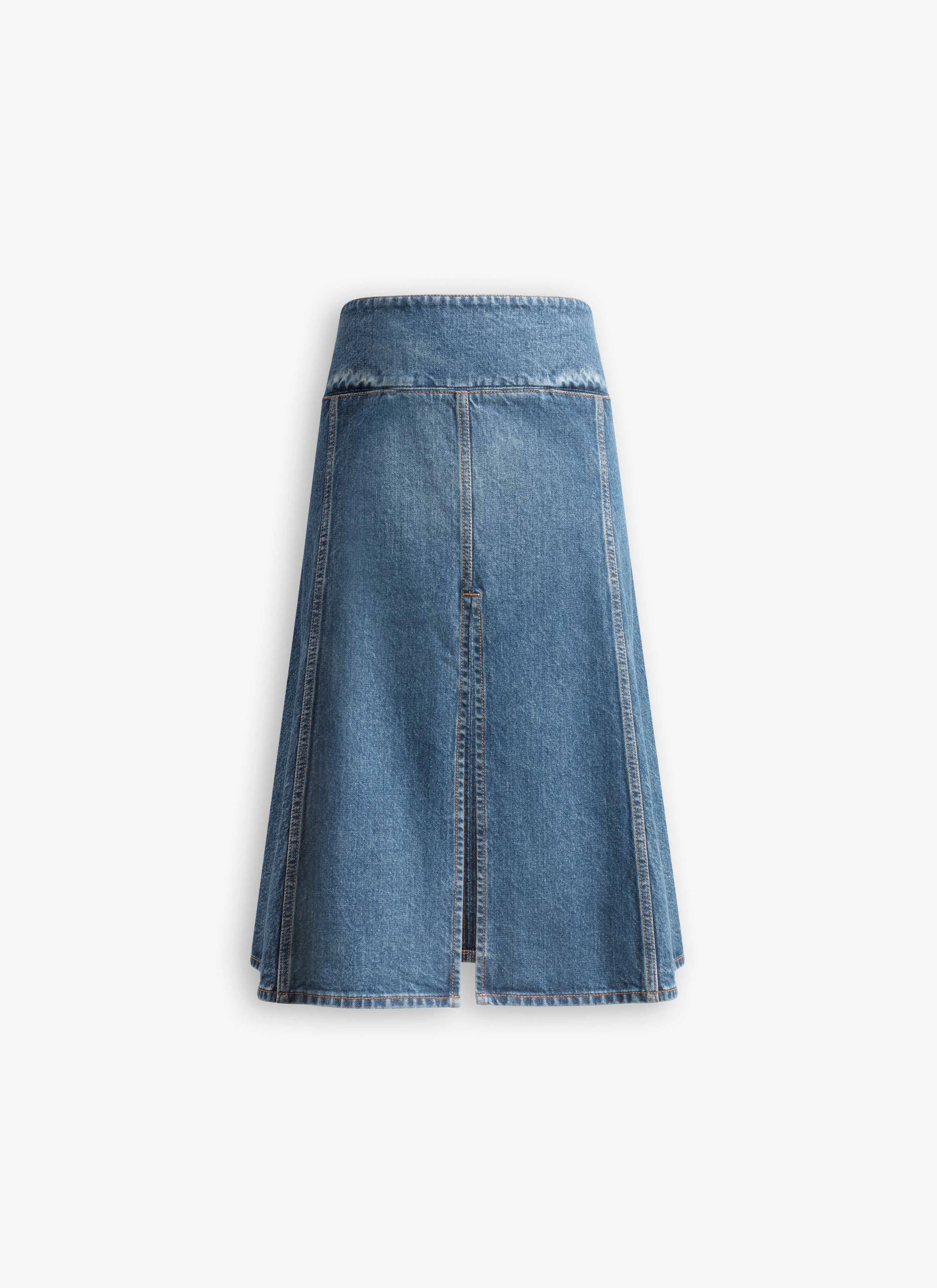 Slit skirt in vintage effect washed denim Low waist, mid-length, front seam pockets A-line cut Made in Italy DETAILS MAIN MATERIAL : 99% COTTON 1% POLYURETHANE PRODUCT REFERENCE : AA9J2437D007B-517