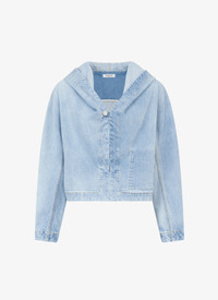 hooded vareuse jacket cropped fit slip-on button to close slit unique color obtained with a combination of a regular stone wash and an after-wash made by hand made in italy DETAILS COMPOSITION: 99% COTTON ADDITIONAL MATERIAL: 1% POLYURETHANE THE MODEL MEASURES 1m78 AND WEARS A SIZE 36 PRODUCT REFERENCE: AA9V03154T587 - 508