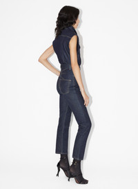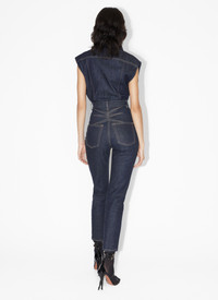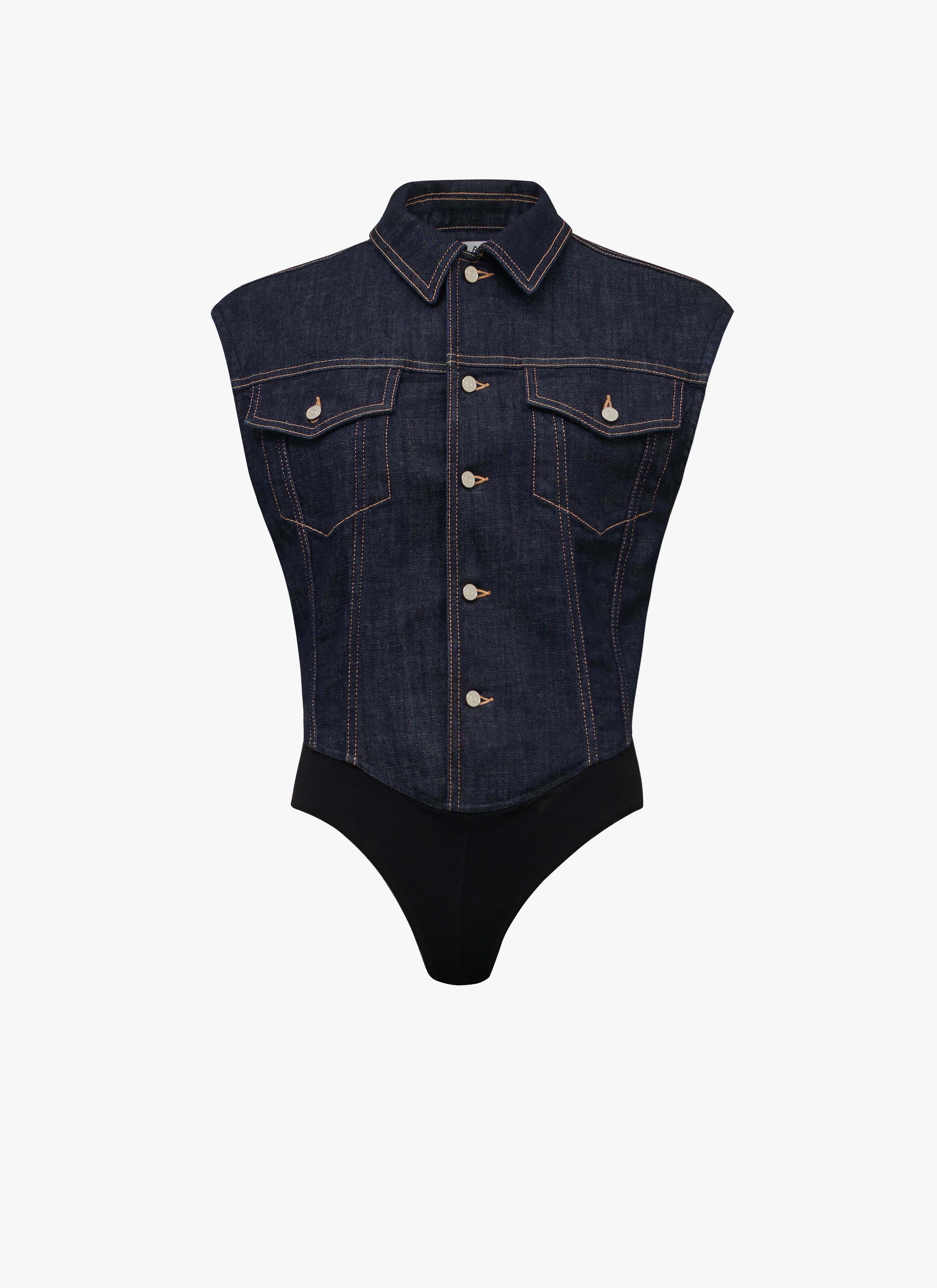 Sleeveless denim body, high neck and shirt collar, button down, made from stretch denim. Made in Italy DETAILS COMPOSITION: 67% Cotton, 21% Recycled cotton, 11% Recycled polyester, 1% Elastane PRODUCT REFERENCE: AA9C08793T530 - 516
