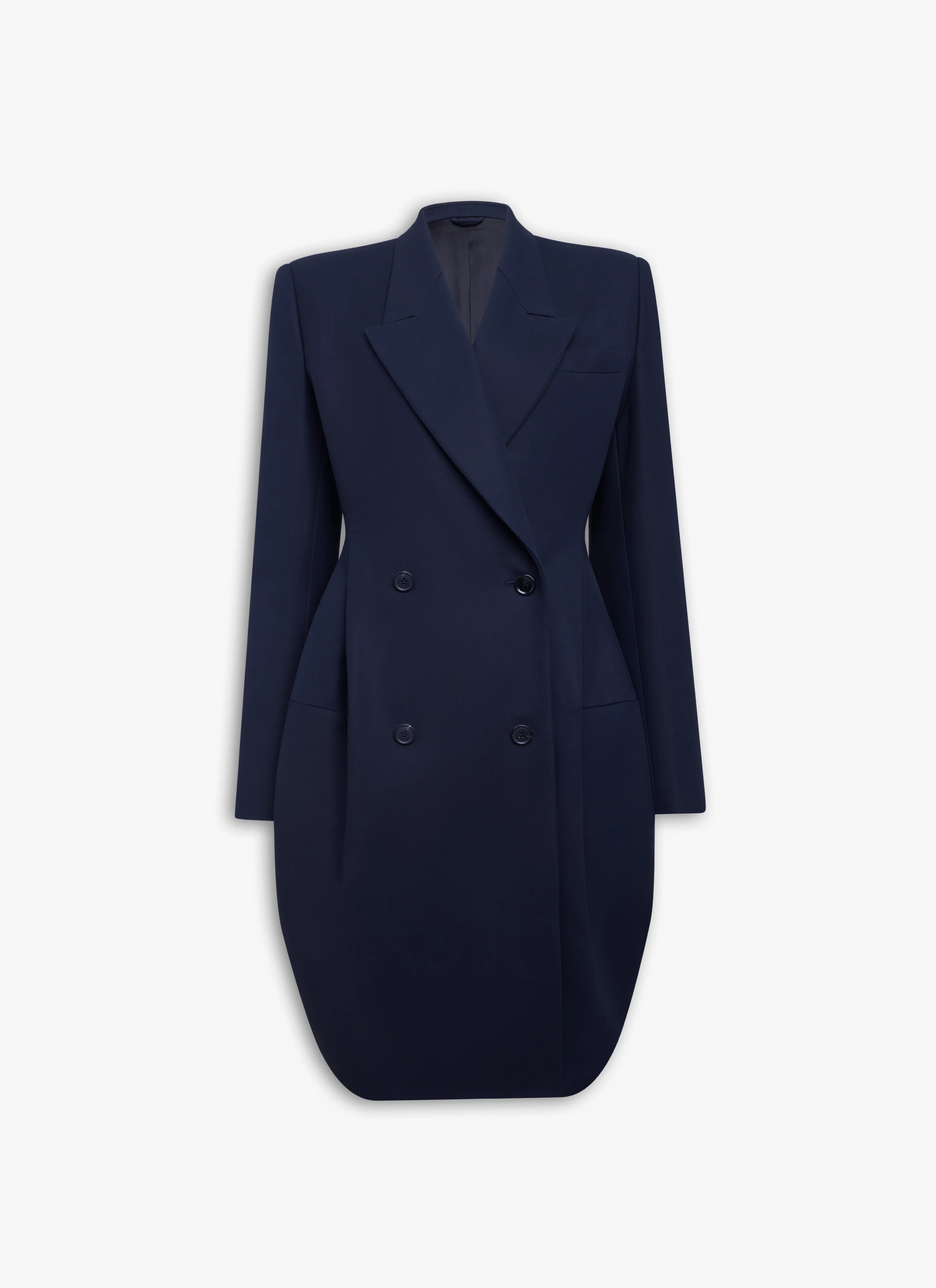 Round double-breasted coat in double cotton Peak lapel, long sleeves, square padded shoulders, cinced waist, knee length, side pockets Tailored fit Made in Italy DETAILS MAIN MATERIAL : 100% COTTON PRODUCT REFERENCE : AA9M1087W036B - 542