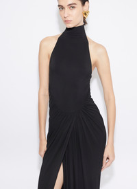 Halterneck draped dress Racer back Figure hugging bodice Loose fit draped skirt slit on the front Made from soft jersey Made in Italy DETAILS COMPOSITION: 96% VISCOSE, 4% ELASTANE PRODUCT REFERENCE: AA9R13216J050 - 995
