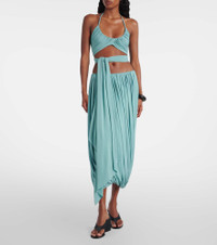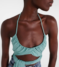 Unnexpected separates from Alaia are designed to enhance your every look. Consider this top: the style is artfully draped to fall down the body and infuse all ensembles with a sense of movement. Product Details - Material: 96% viscose, 4% elastane - Care instructions: dry clean - Made in Italy - Designer color name: Bleu Ocean - Item color: blue - Item number: P01047497 Size & Fit - True to size - Low back - Fitted - Adjustable at the waist - Slightly stretchy fabric - Cropped - The model seen in the picture is 178cm-5'10" and wearing a size FR 36