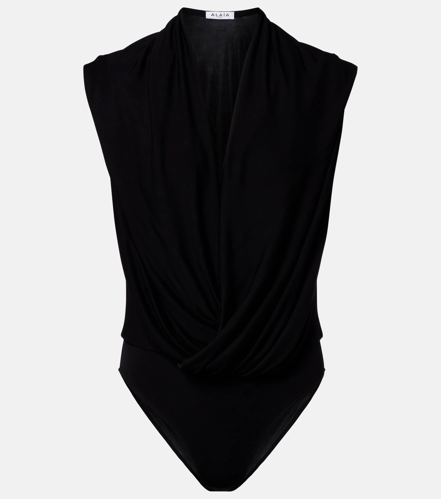 Upholding the legacy of Azzedine Alaia, the maison’s collections achieve an artful balance between sculptural and wearable. This modern bodysuit is crafted from draped jersey and features a large hood. Product Details - Material: 100% viscose - Care instructions: dry clean - Made in Italy - Color: black - Designer color name: Noir Alaia - Closure: snap-buttoned fastenings - Item number: P01118814 Size & Fit - True to size - Fitted - Stretchy fabric - High-cut leg - Height of model is 180cm-71" and wears a size FR 34