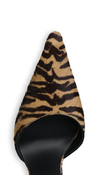 DETAILS D'Orsay pumps with lacquered stiletto heel Thin ankle strap Drop shaped heel base 90 mm heel Tiger printed haircalf leather Made in Italy MATERIALS Highlights MAIN MATERIAL: 100% CALFSKIN LEATHER MAIN LINING: 95% LAMBSKIN LEATHER, 5% GOATSKIN LEATHER SOLE: 70% RUBBER, 30% CALFSKIN LEATHER HEEL: 100% ACRYLONITR BUTADIENE STYR BUCKLE: 100% ZAMAK PRODUCT REFERENCE: AA3E1021I105-113