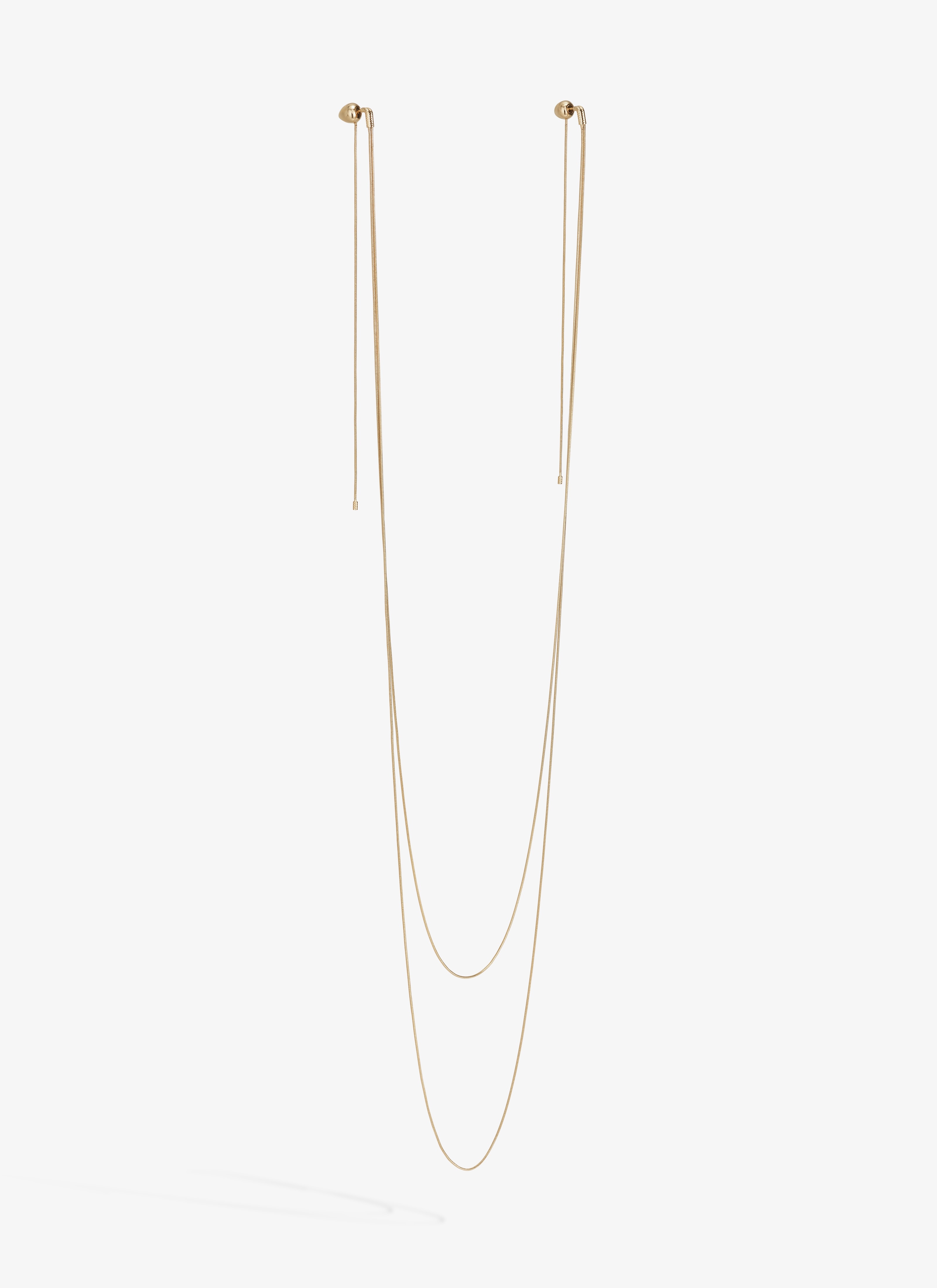 Earrings made from two chains going around the neck from ear to ear into a necklace Brass with gold finish Largest chain length : 53 cm Earring clasp length : 17 cm Made in Italy DETAILS MAIN MATERIAL: 100% BRASS PRODUCT REFERENCE: AA2B144LA006 - 231