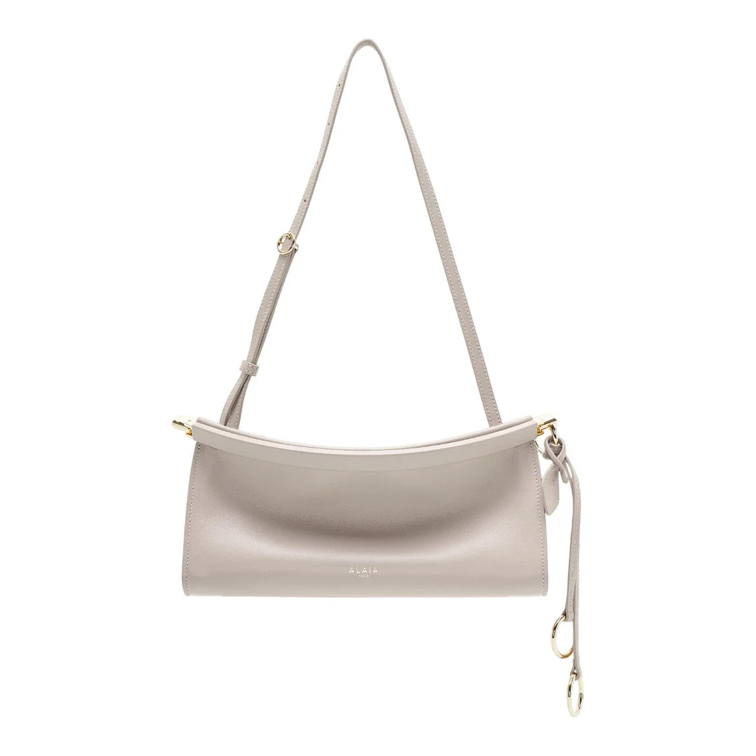 600071382GRY0OS / PF25-AA1S01426CA332/00/824 - Premium glossy calfskin leather construction - Adjustable and removable shoulder strap - Top zip closure with leather pull - Gold-tone hardware throughout - Interior fabric lining - Compact east-west silhouette - Convertible styling options ALAIA East West Small Bag delivers sophisticated elegance with versatile functionality for day-to-evening wear. Crafted from premium glossy calfskin leather in refined taupe, featuring the brand's signature minimalist aesthetic and impeccable Italian craftsmanship. The structured silhouette and convertible strap system create a timeless accessory that elevates any contemporary wardrobe.
