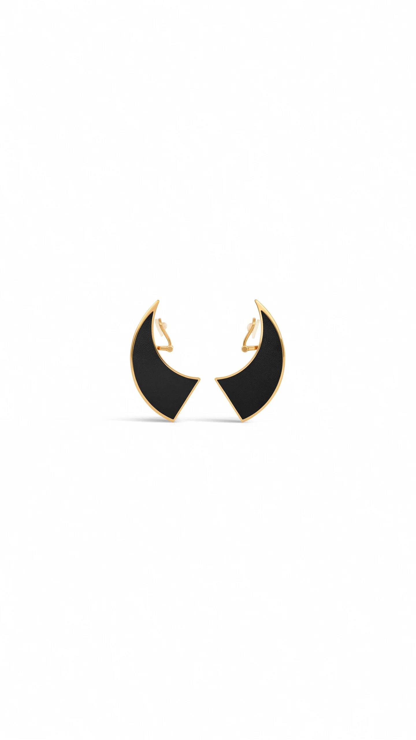 DETAILS Medium sculptural earrings with sharp edges Curved pyramid shape Clip-on earrings Gold plated brass and lambskin leather Length: 60 mm Made in Italy MATERIALS MAIN MATERIAL: 70% BRASS, 30% LAMB LEATHER PRODUCT REFERENCE: AAJE1066I228-573