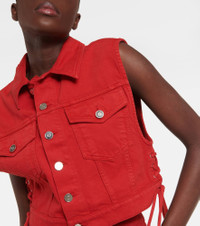 This cropped vest from Alaïa is made in Italy from pure cotton. The design has two front pockets and lace-up eyelet tie details on the sides. Product Details - Made in Italy - Care instructions: machine wash at 30 degrees - Pockets: flap pockets - Designer color name: Rouge Alaia - Material: 100% cotton - Closure: button fastening - Item number: P00753097 Size & Fit - True to size - Designed for a loose fit - Mid-weight material - Cropped - The model seen in the picture is 178cm-5'10" and wearing a size FR 36