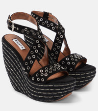 Embellished suede wedge sandals