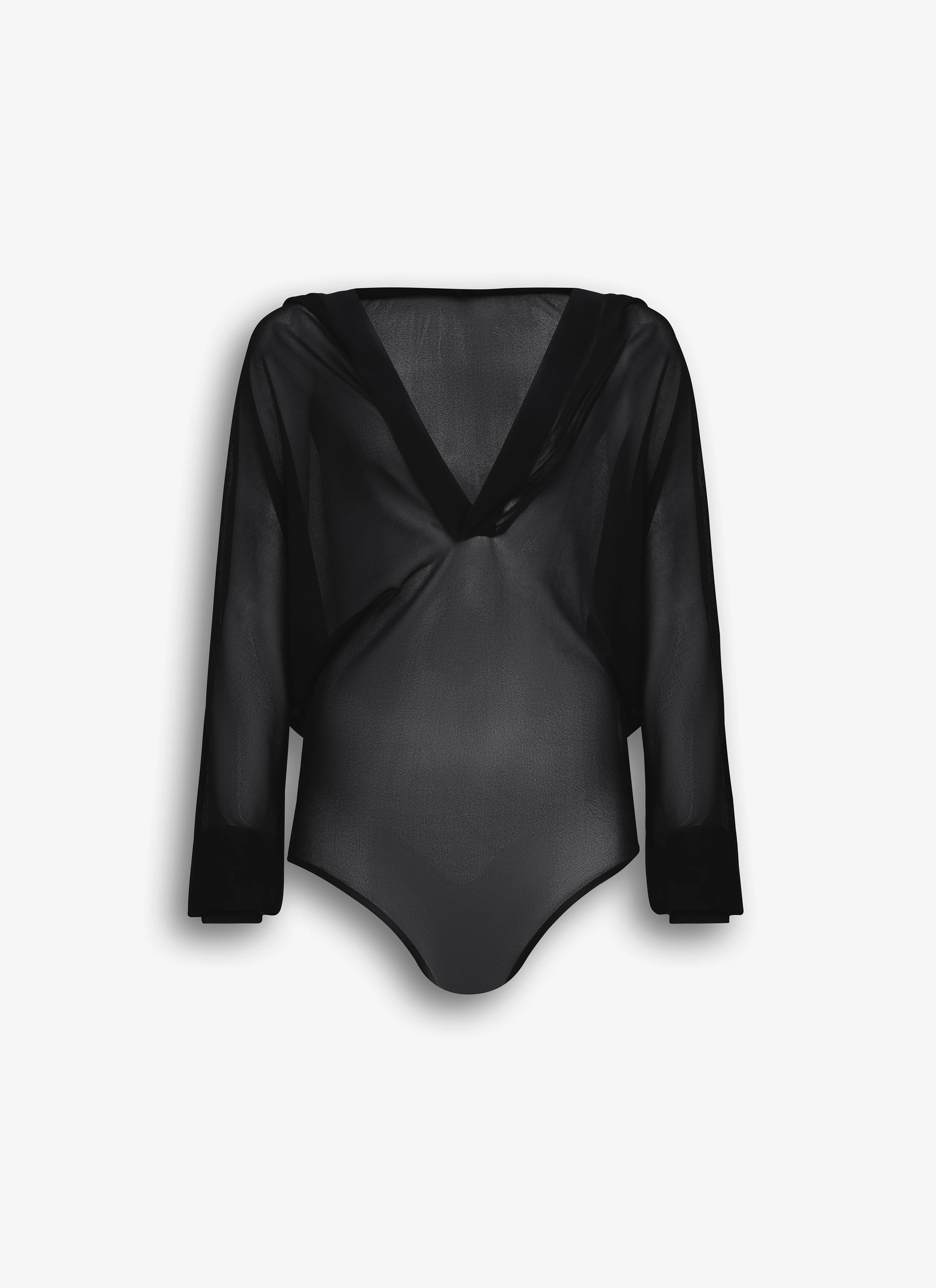 Hooded bodysuit in fine knit Plunging neckline, large hood, long sleeves with ribbed wristbands Loose fit Made in Italy DETAILS MAIN MATERIAL: 75% VISCOSE 24% POLYAMIDE 1% ELASTANE PRODUCT REFERENCE: AA9B0371K053A - 995