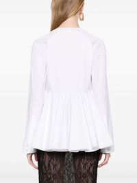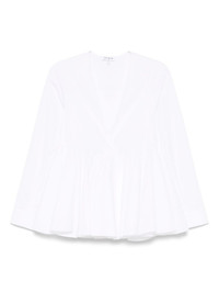flare shirt Highlights - White - Concealed front button fastening - Buttoned cuffs - Plunging v-neck - Long sleeves Made in Italy Composition Cotton 100% SIZE & FIT Model measurements Height 5 ft 9 in(1.75 m) Bust/Chest 31.88 in(81 cm) Hips 34.64 in(88 cm) Waist 24.01 in(61 cm) FittingInformation Designed to be unstructured, offering a loose fit throughout Made from a midweight non-stretch fabric