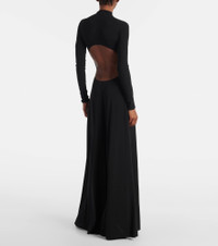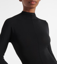 Upholding the legacy of Azzedine Alaia, the maison’s collections achieve an artful balance between sculptural and wearable. This jumpsuit was made in Italy and comes with flared legs. Product Details - Material: 96% viscose, 4% elastane - Care instructions: dry clean - Made in Italy - Designer color name: Noir Alaia - Item color: black - Closure: invisible zipper - Item number: P01047383 Size & Fit - Fits large to size - we recommend trying one size smaller - Low back - Semi-sheer - Fitted - Stretchy fabric - Wide-leg - The model seen in the picture is 178cm-5'10" and wearing a size FR 34