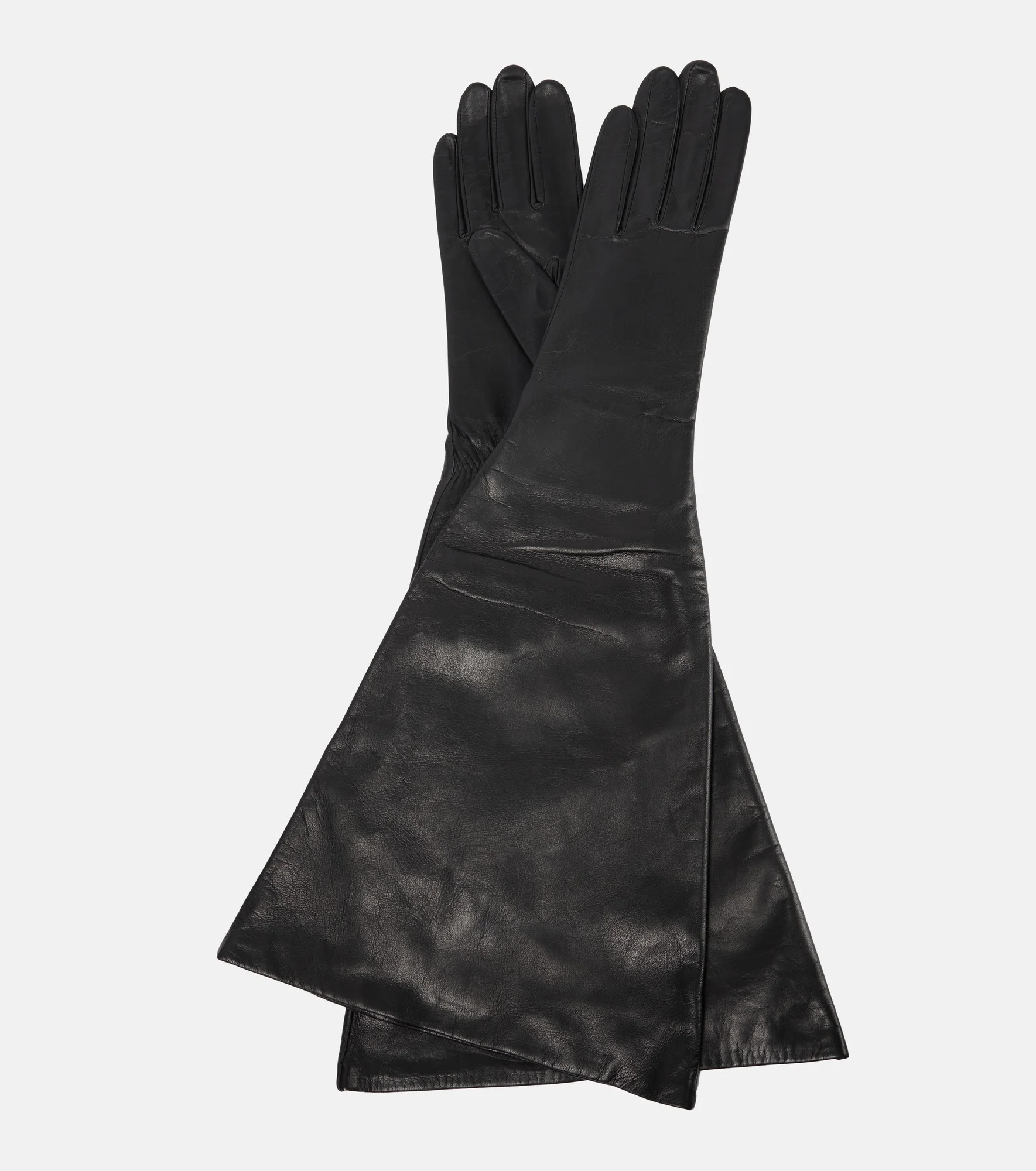 In line with Alaïa’s affinity for sculptural silhouettes, these statement gloves feature dramatic, flared cuffs. They’re made from smooth lambskin leather. Product Details - Care instructions: specialist clean - Material: 100% lamb leather - Contains non-textile parts of animal origin - Comes with garment bag - Made in France - Item number: P00836846 Size & Fit - Max. circumference 54cm-21.5" - Length of size 6.5 = 54cm-21.5" - Length of size 7 = 55cm-21.5" - Length of size 7,5 = 57cm-22.5" - Length of size 8 = 58cm-23"