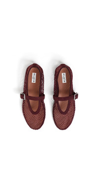 DETAILS Signature Alaia ballet flats inspired by classical Japanese shoes Buckle strap on top Rubber sole Fishnet textile with strass and suede goatskin Made in Italy MATERIALS Highlights MAIN MATERIAL: 97% POLYESTER, 3% ELASTANE SECONDARY MATERIAL: 100% GOATSKIN LEATHER MAIN LINING: 95% LAMBSKIN, 5% GOATSKIN LEATHER MAIN APPLICATION: 100% ACRYLIC SOLE: 100% RUBBER BUCKLE: 100% ZAMAK PRODUCT REFERENCE: AA3A029A023-325