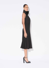 Sleeveless dress in flowing viscose with a matte finish Midi length, high band collar, plunging V-neck Detachable leather flower necklace Fluid fit Made in Italy DETAILS MAIN MATERIAL : 100% VISCOSE PRODUCT REFERENCE : AA9R2812W096B-995