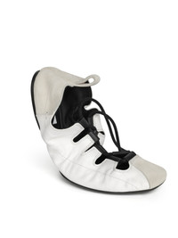DETAILS Laced supple slippers inspired by dancing shoes Feminine laced open vamp unveiling the beginning of the toes Laces tying around the ankle Rubber sole Nappa lambskin and suede goatskin leather Made in Italy MATERIALS MAIN MATERIAL: 100% LAMB LEATHER SECONDARY MATERIAL: 100% GOAT LEATHER MAIN LINING: 100% LAMB LEATHER OUTER SOLE: 100% RUBBER PRODUCT REFERENCE: AA3A1030I208-000