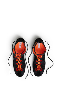 DETAILS Laced supple slippers inspired by dancing shoes Feminine laced open vamp unveiling the beginning of the toes Laces tying around the ankle Rubber sole Nylon fabric and suede goatskin leather Made in Italy MATERIALS MAIN MATERIAL: 90% NYLON, 10% POLYACRYLIC SECONDARY MATERIAL: 100% GOAT LEATHER MAIN LINING: 100% LAMB LEATHER OUTER SOLE: 100% RUBBER PRODUCT REFERENCE: AA3A1030A043-999