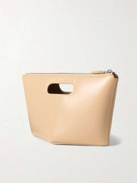 EDITORS'NOTES Alaïa's collections always put creativity at the fore. This pouch has been crafted in Italy from supple leather to achieve its sculptural, folded profile and is stamped with the house's foiled logo. There's enough space inside for everyday essentials; think your cardholder, phone and keys. SIZE & FIT This item’s measurements are: - Height: 16cm / 6.3in - Width: 25cm / 9.8in - Depth: 11cm / 4.3in DETAILS & CARE - Beige leather (Calf) - Cutout handles - Suede lining - Zip fastening along top - Comes with a dust bag
