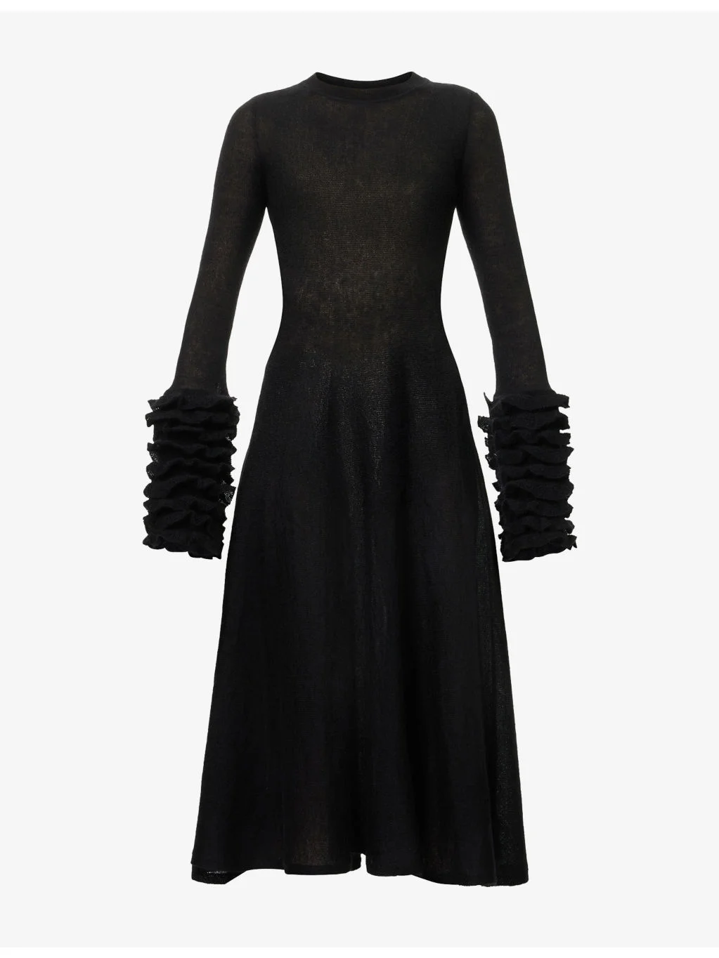 Frill-Cuff Knitted Wool-Blend Midaxi Dress
