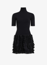 frill mini dress high neck and short sleeves bodycon skirt made from a band of frills made from a shiny viscose and silk on a stretch viscose base made in italy DETAILS COMPOSITION: 71% VISCOSE, 15% POLYESTER, 13% POLYAMIDE, 1% POLYURETHANE PRODUCT REFERENCE: AA9R24345M878 - 995