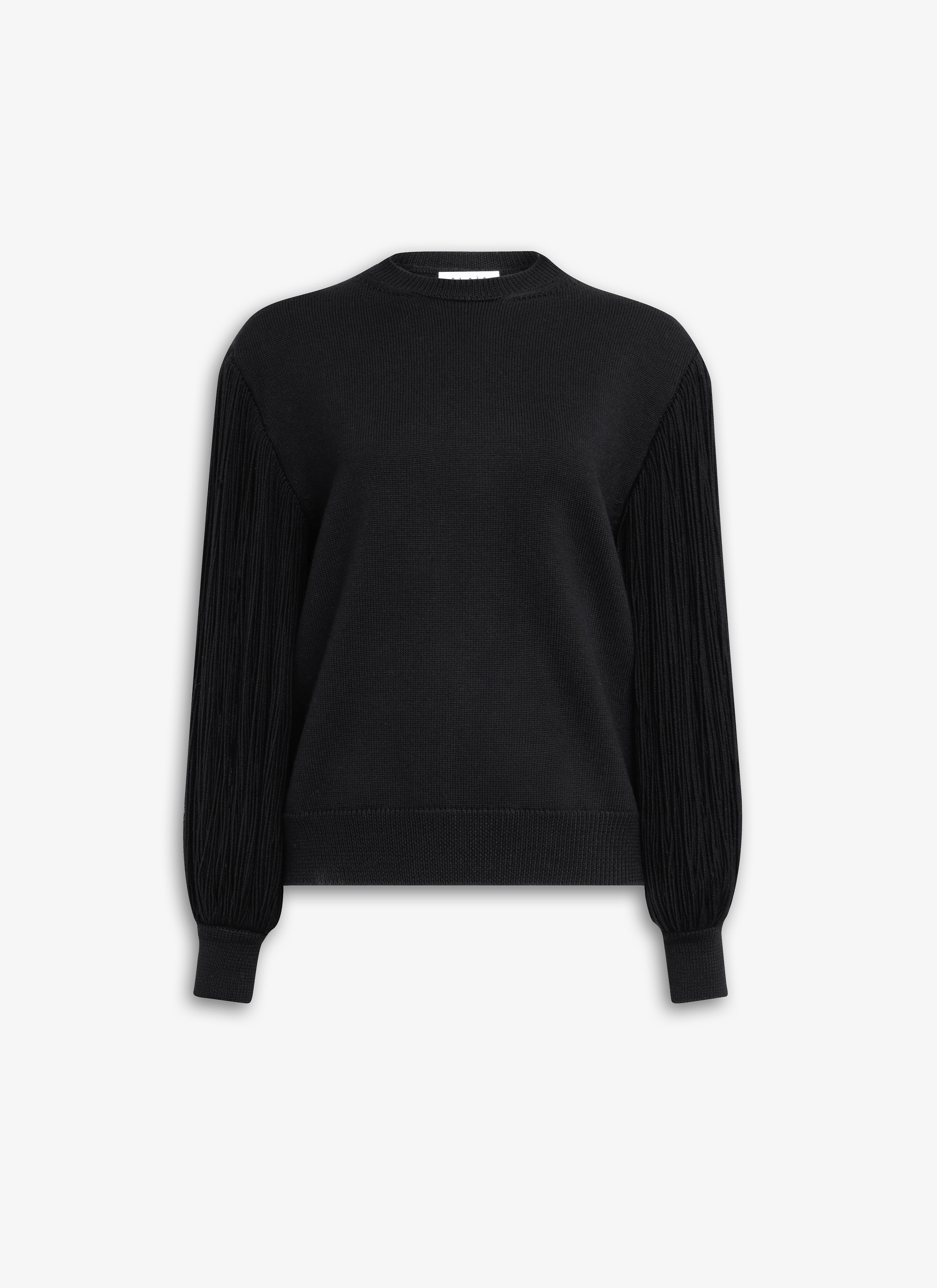 Knitted fringes sleeves jumper Crew neck Long, fringed sleeves tightened at the wrists 1x1 rib at the cuff, neck and hem Knitted in a heavy-gauge merino wool Made in Italy DETAILS COMPOSITION: 99% WOOL, 1% POLYAMIDE PRODUCT REFERENCE: AA9S03196M902 - 995
