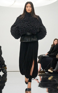 PRODUCT DETAILS - Featured on the Fall/Winter '24 Runway - Relaxed fit, high-rise, wide-leg jogger silhouette, dense fringed construction, heavy gauge merino yarn, textured finish, ribbed knit cuffs - Unlined - Composition: Fringe Knit - Color: pink - Pull on