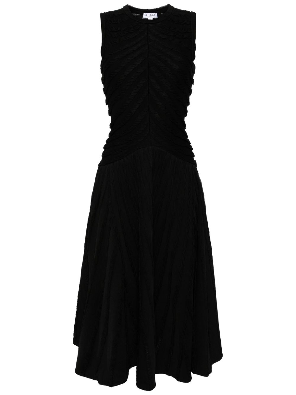 textured cupro-silk blend midi dress Highlights - Black - Cupro-silk blend - Stretch-design - Crepe texture - Crew neck - Sleeveless - A-line - Below-knee length - Asymmetric hem - The crease-effect on this piece is very much intentional, no ironing necessary. Made in Italy Composition Cupro 49%, Silk 34%, Polyamide 8%, Spandex/Elastane 5%, Polyester 4% SIZE & FIT Model measurements Height 5 ft 10 in(1.78 m) Bust/Chest 31.88 in(81 cm) Hips 35.43 in(90 cm) Waist 24.4 in(62 cm) FittingInformation Designed for a close fit at the chest and waist with a loose fit at the hip Made from a midweight stretch fabric, this piece offers elasticity and flexibility when worn This piece fits true to size – take your usual size
