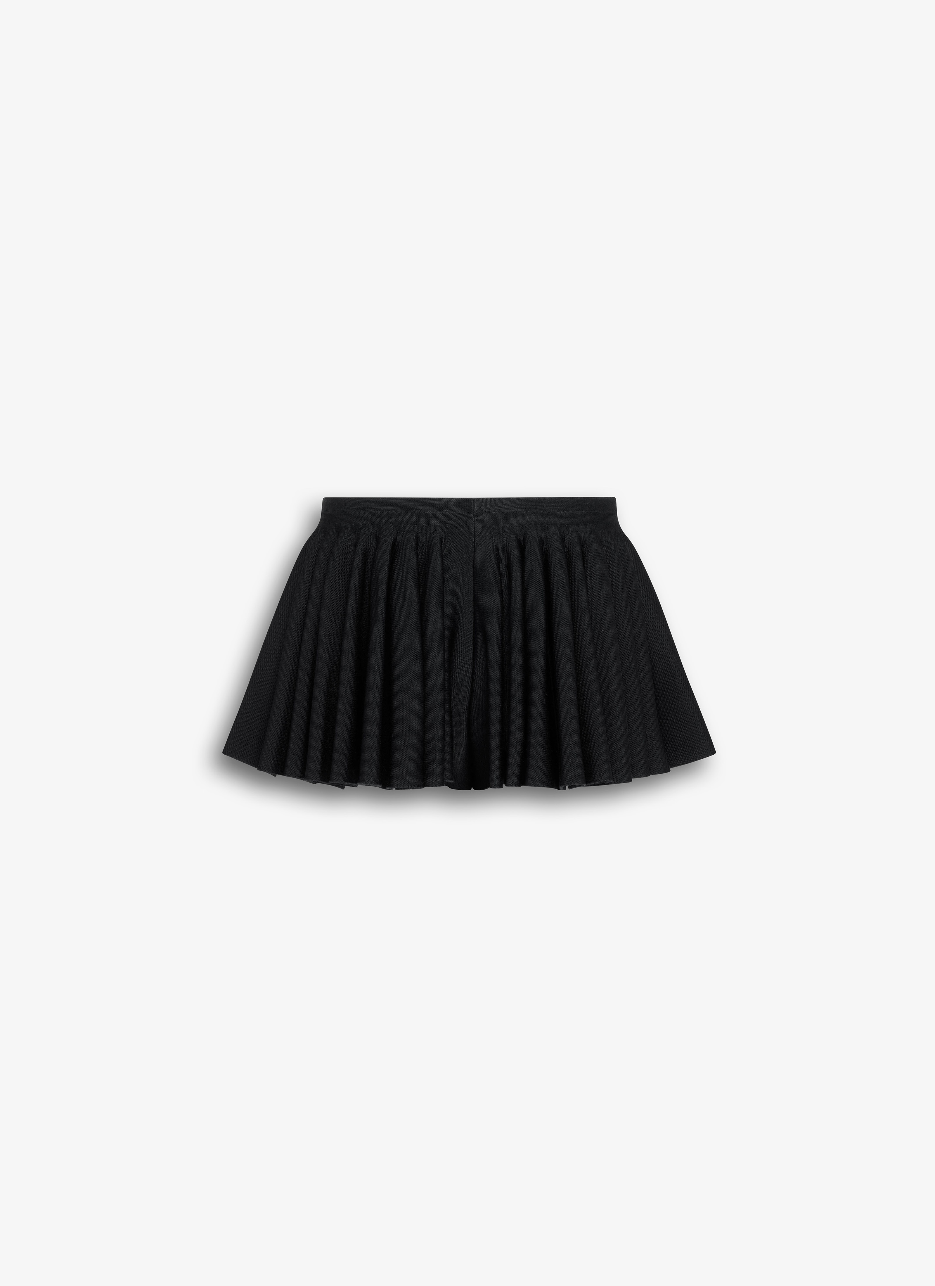 Pleated mini shorts in wool blend knit Low waist, elastic waistband Flare cut Made in Italy DETAILS MAIN MATERIAL: 48% VISCOSE 43% WOOL/OVIS ARIES 7% POLYAMIDE 2% ELASTANE PRODUCT REFERENCE: AA9T0004K032A - 995
