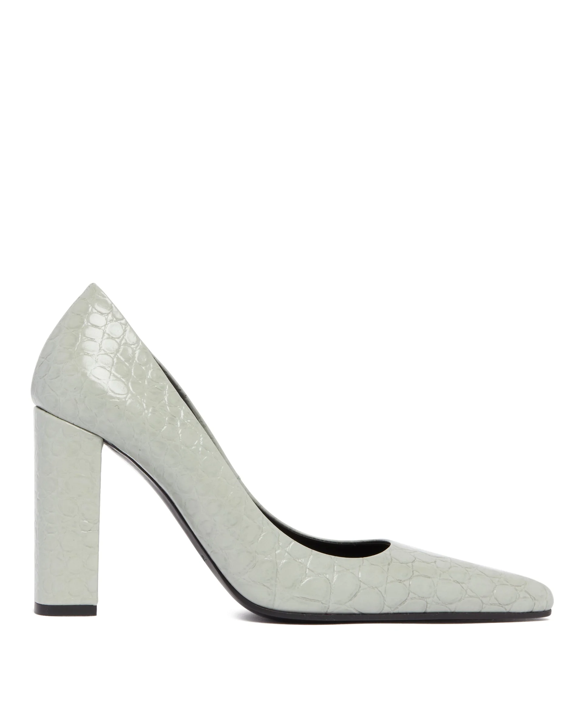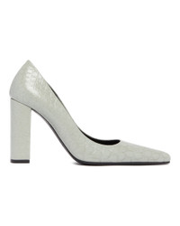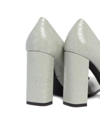 Alaia Gray Pointed Toe Pumps. Gray embossed crocodile-effect calf leather, pointed toe, covered block heel. Leather lining, leather sole. Heel Height: 9 cm DETAILS Model: AA3E1015I053634 Composition: 100% Leather Made in: ITALY Season: FW25-26