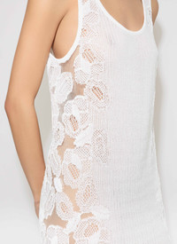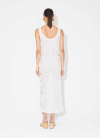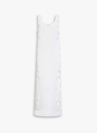 Column dress knitted from guipure lace with flower motif Maxi length, scoop neckline, sleeveless design Cut out flower design runing down both sides of the dress Made in Italy DETAILS MAIN MATERIAL : 58% COTTON 31% POLYAMIDE 11% POLYESTER PRODUCT REFERENCE : AA9R2749K071B - 000