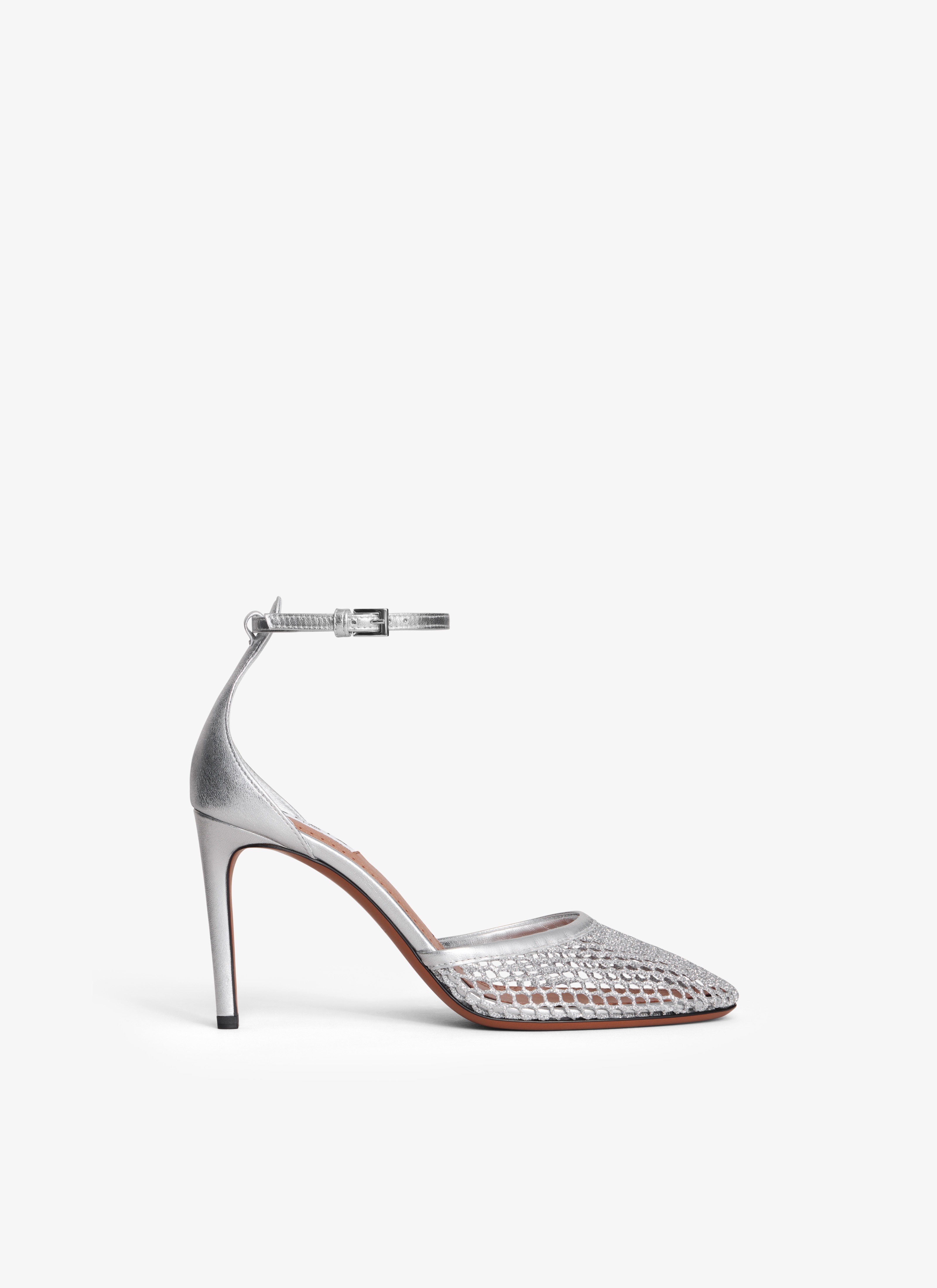 Heel fishnet pumps Ankle strap 90mm heel Made in Italy DETAILS MAIN LINING:100% LAMBSKIN SOLE:95% CALF LEATHER5% RUBBER UPPER MATERIAL 1:82% POLYAMIDE 18% POLYESTER UPPER MATERIAL 2:100% LAMBSKIN PRODUCT REFERENCE: AA3E049TK028 - 090