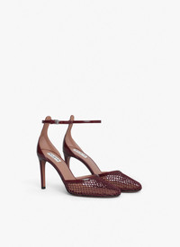 Heel fishnet pumps Ankle strap 90mm heel Made in Italy DETAILS MAIN LINING:100%LAMBSKIN SOLE:80% CALFSKIN LEATHER 20% RUBBER UPPER MATERIAL 1:100% POLYAMIDE UPPER MATERIAL 2:100% CALFSKIN LEATHER PRODUCT REFERENCE : AA3E049TK007 - 325