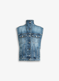 Faded blue denim vest Relaxed fit High neck, defined waist, contrasting topstitching, metal buttons Made in Italy DETAILS COMPOSITION: 99% COTTON, 1% POLYURETHANE PRODUCT REFERENCE: AA9V0424T536A - 525