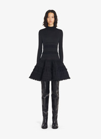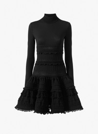 High-neck Crinoline woolen dress; long sleeves; different knit stitches; lace inserts; small ruffles and 3D effect patterns; short skater dress. Made in Italy DETAILS COMPOSITION: 100% WOOL PRODUCT REFERENCE: AA9R22392M626 - 995