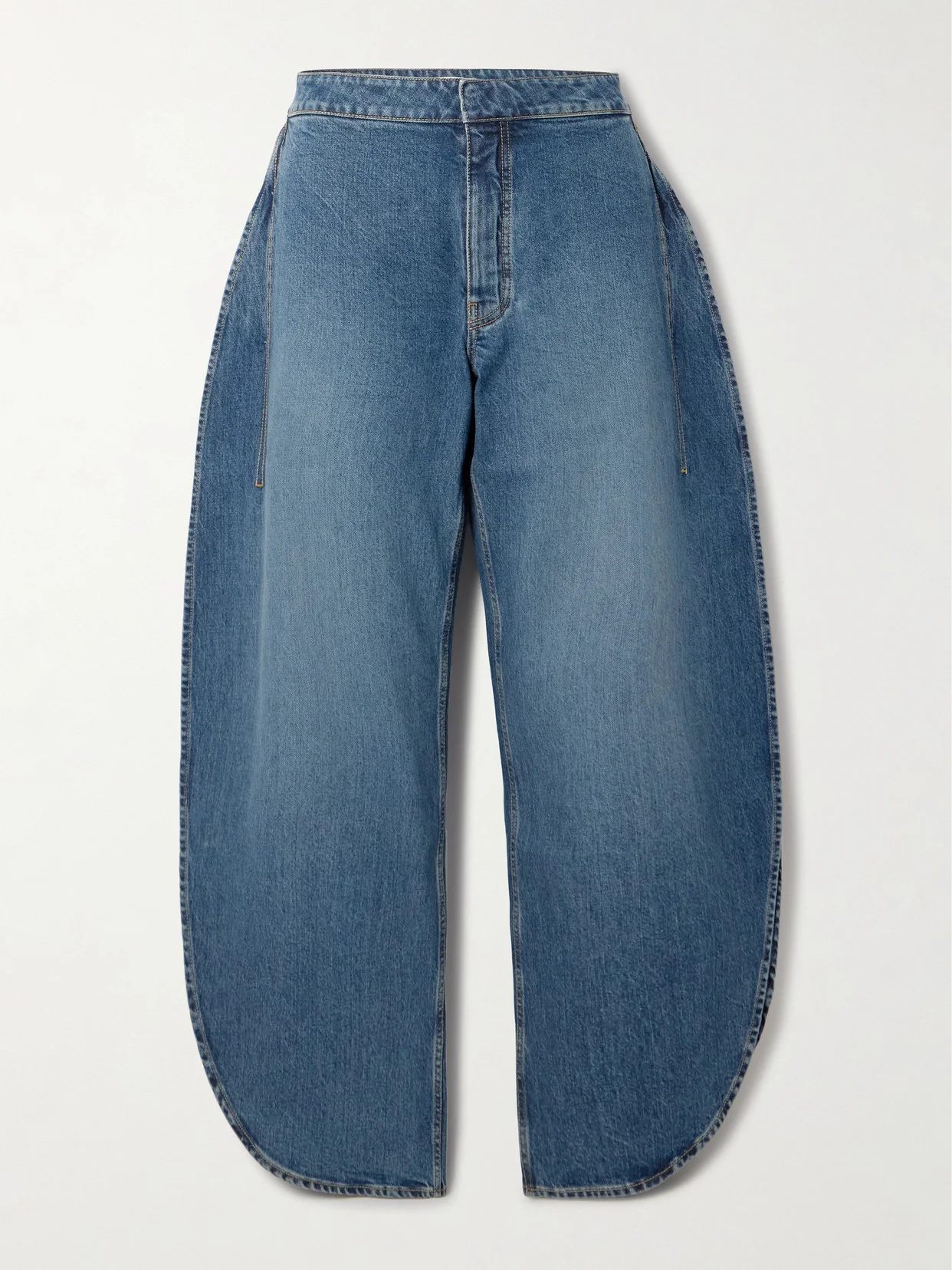 Alaia offers a playful take on proportions with these high-rise jeans. Made from denim that's faded for a vintage feel, they have a voluminous barrel shape with leg-baring side slits and gently tapered cuffs. Wear your top tucked in to showcase the stitched detailing at the back.
