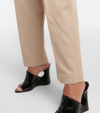 These pants from Alaia offer the perfect opportunity to style one of the brand’s signature corset belts. They’re tailored from a cotton-blend with press-pleated straight legs and a wide, high-rise waistband. Product Details - Lining: 100% cotton - Trim: 100% cotton - Made in Italy - Designer color name: Beige Clair - Care instructions: specialist clean - Material: 35% cotton, 65% polyester - Belt loops - Closure: zipper, hook fastening - Pockets: side slit pockets, back pockets - Item number: P00700658 Size & Fit - Fits small to size - we recommend trying one size larger - Wide-leg - High-waisted - The model seen in the picture is 178cm-5'10" and wearing a size FR 38