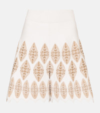 Stay chic in the height of summer with these white shorts from Alaïa. Made from a lightweight stretch knit, they have a practical elasticated waistband, metallic jacquard detailing, and a scalloped hem. Style yours with a simple white tank top to keep the details in focus. Product Details - Material: 7% metallic fibres, 16% polyester, 70% viscose, 2% polyurethane, 5% polyamide - Made in Italy - Elasticated waistband - Designer color name: Blanc/Beige - Care instructions: dry clean - Item number: P00546568 Size & Fit - True to size - Mid-weight material - Stretchy fabric - Wide-leg - High-waisted - Inseam length approx: 14cm-5.5" - The model seen in the picture is 178cm-5'10" and wearing a size FR 36