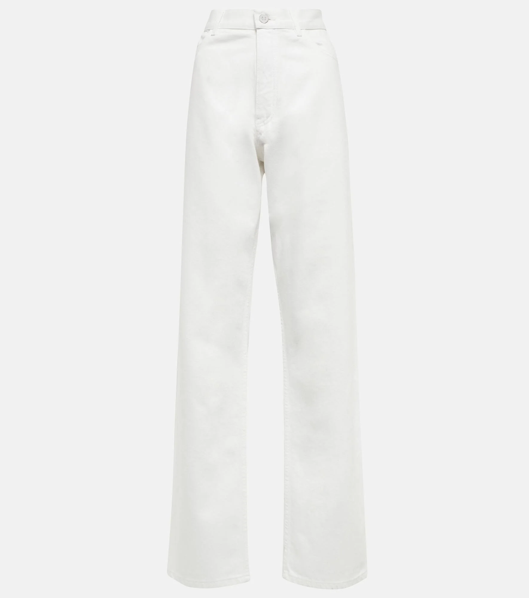 These white jeans from Alaïa are shaped with a high-rise waistband and straight legs. - material: 100% cotton - lining: 96% cotton, 4% elastane, partially lined - care instructions: machine wash at 30 degrees - five pockets - zipper fly, button fastening - Made in Italy - belt loops - Designer colour name: Blanc - Runs large, please see Size & Fit tab size & fit - Fits large to size - we recommend trying one size smaller - Mid-weight material - Non-stretchy fabric - Wide-leg - High-rise - Inseam length approx: 870cm-342.5" - The model seen in the picture is 178cm-5'10" and wearing a size FR 34