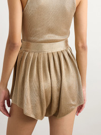 Gathered Metallic Knitted Shorts