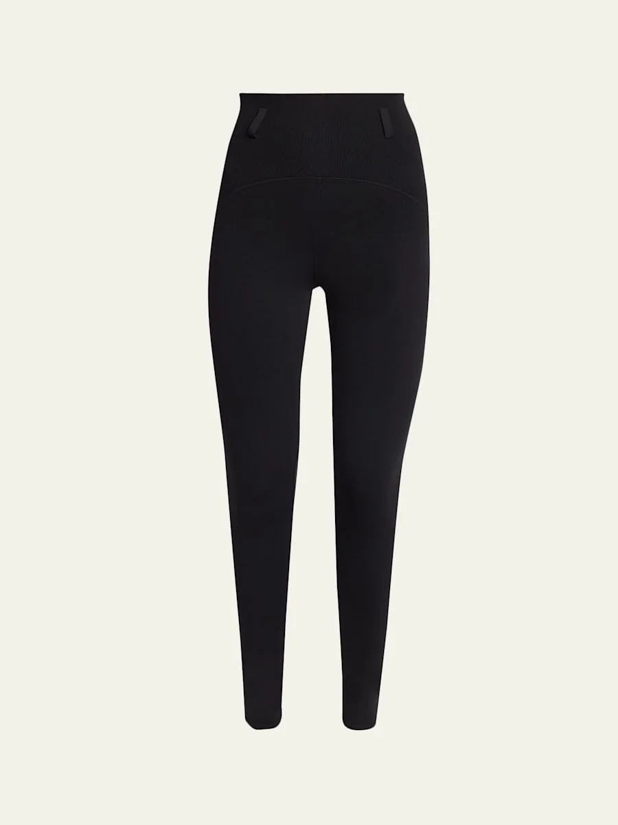 ALAIA leggings are crafted from stretch jersey accented with a ribbed knit curved yoke and belt loops High rise Secondskin fit Ankle length Pullon style Viscose/nylon/polyamide/polyester Made in Italy