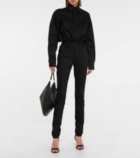 These jeans from Alaïa are an elevated wardrobe essential. Made from cotton, they are cut to a high-rise waist and feature topstitching details along the center of the slim legs. - material: 99% cotton, 1% polyurethane - lining: partially lined - pocket lining: 100% cotton - care instructions: machine wash at 30 degrees - five pockets - zipper fly, button fastening - Made in Italy - belt loops - Designer colour name: Noir Alaia - Runs small, please see Size & Fit tab
