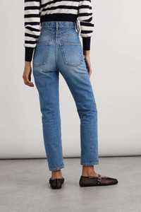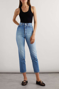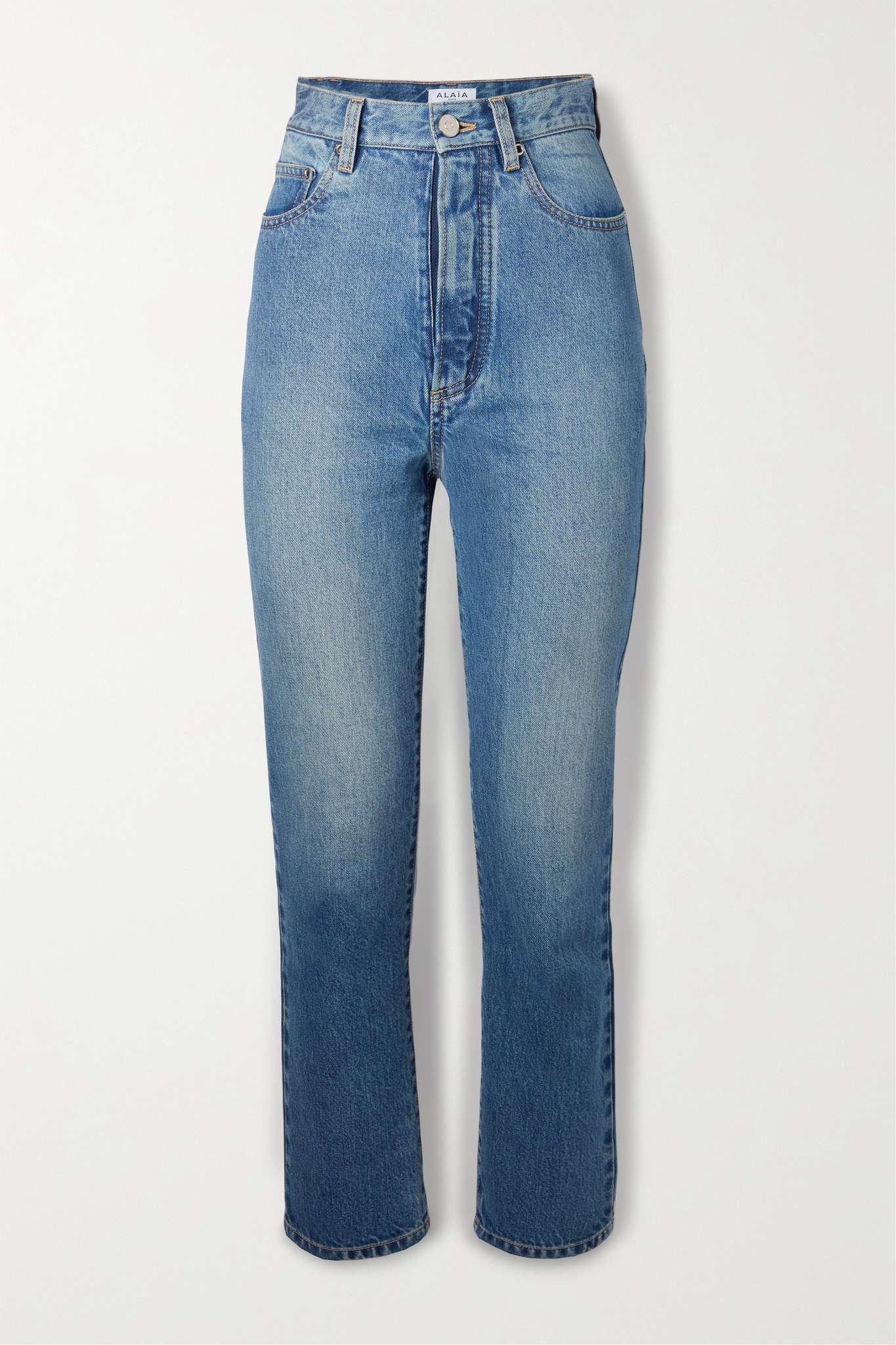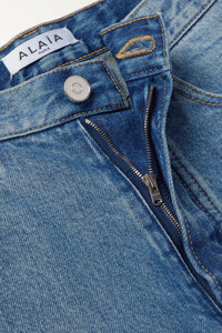 EDITORS'NOTES Alaïa applies expert craftsmanship to wardrobe staples as well as innovative couture. Designed to sit high on the waist, these jeans are cut from blue denim in a classic slim-leg silhouette. Style yours with sandals or sneakers. SIZE & FIT - Fits true to size, take your normal size - High-rise, cut for a slim fit - Mid-weight, non-stretchy fabric - Model is 177cm/ 5'10"" and is wearing a FR 36 DETAILS & CARE - Blue denim - Button and concealed zip fastening at front - 100% cotton