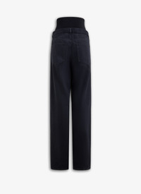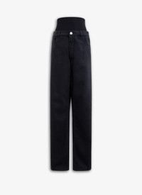 Black denim wide-leg jeans Wide leg High waist, integrated matching knit waistband, zipper, belt loops Made in Italy DETAILS COMPOSITION: 99% COTTON, 1% POLYURETHANE POCKET LINING: 65% POLYESTER, 35% COTTON PRODUCT REFERENCE: AA9P0155D003A - 995