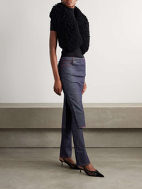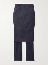 EDITORS'NOTES Alaia's jeans are cut from dark-wash denim and overlaid with a matching midi skirt. They're designed to sit high on the waist and fall to straight legs with contrasting red topstitching. Wear yours with a form-fitting bodysuit from the label. SIZE & FIT Model measurements: - Fits true to size, however those who are between sizes should take the smaller size - High-rise, cut for a straight-leg fit - Mid-weight, slightly stretchy fabric - Size 34 jeans have an inside leg of 32"/ 82cm - Model is 180cm/ 5'11" and is wearing a FR 34 - Bust: 77cm/ 30.5” - Waist: 60cm/ 23.5” - Hip: 92cm/ 36” DETAILS & CARE - Dark-blue denim - Concealed hook and zip fastening at side - 90% cotton, 8% polyester, 2% elastane - Dry clean