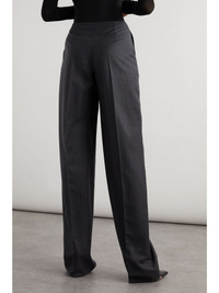 The sculptural belt that cinches these Alaia pants is integrated into the waistband. They're made from fine wool-flannel, with pleats through the wide legs. The croc-effect patent leather makes a striking counter to such classic tailoring. Details & Care - Gray wool-flannel, black croc-effect patent leather - Zip fastening along side - 100% wool; trim: 100% leather (Calf); trim2: 72% polyamide, 28% elastane - Dry clean