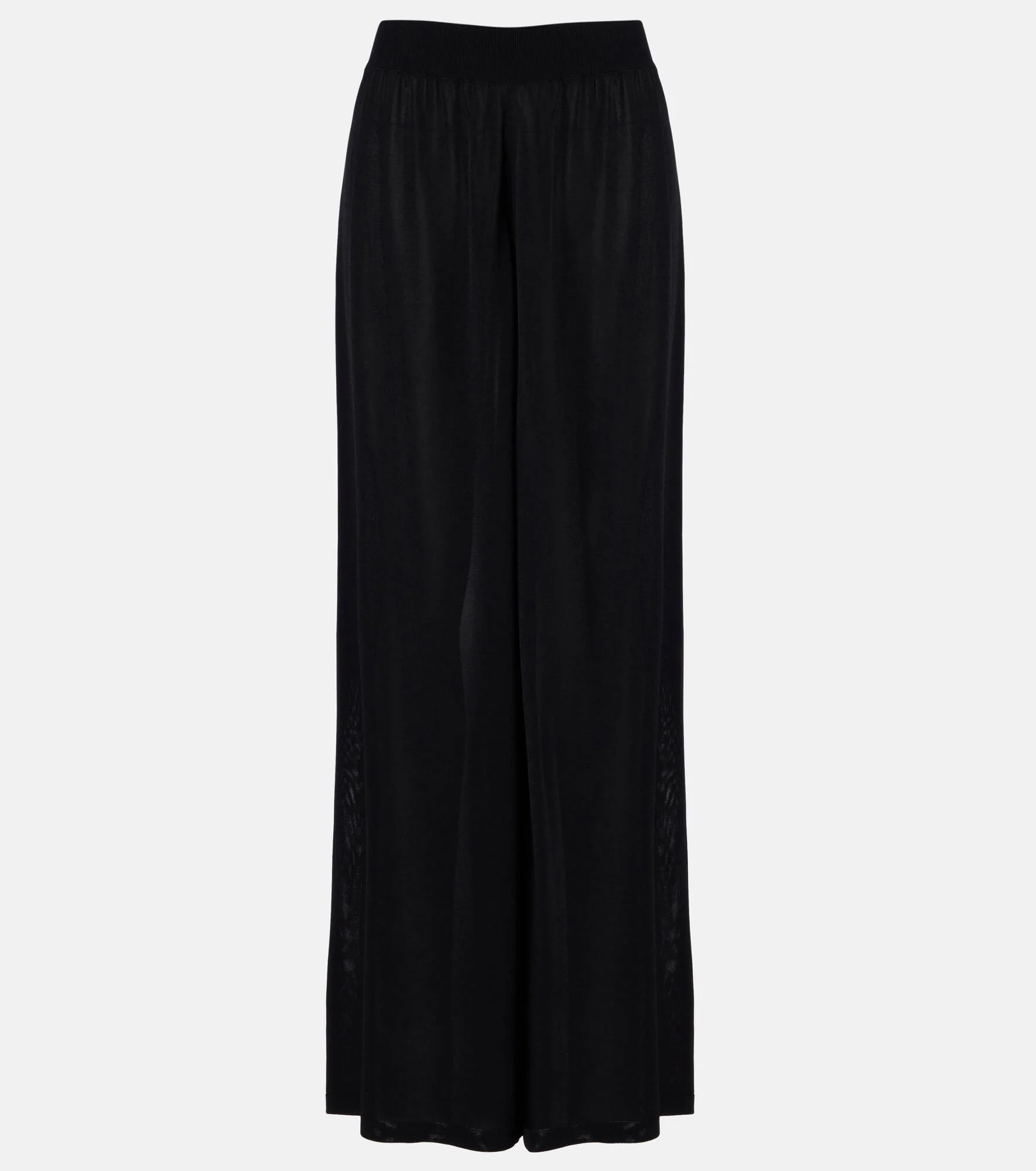 Upholding the legacy of Azzedine Alaia, the maison’s collections achieve an artful balance between sculptural and wearable. These pants sit high at the waist and are shaped into a wide-leg silhouette. Product Details - Material: 76% viscose, 24% polyamide - Care instructions: dry clean - Made in Italy - Color: black - Designer color name: Noir Alaia - Details: 61% viscose, 38% polyamide, 1% elastane - Item number: P01118580 Size & Fit - True to size - Elasticated waist - Slightly stretchy fabric - Wide-leg - High-waisted - The model seen in the picture is 178cm-5'10" and wearing a size FR 34