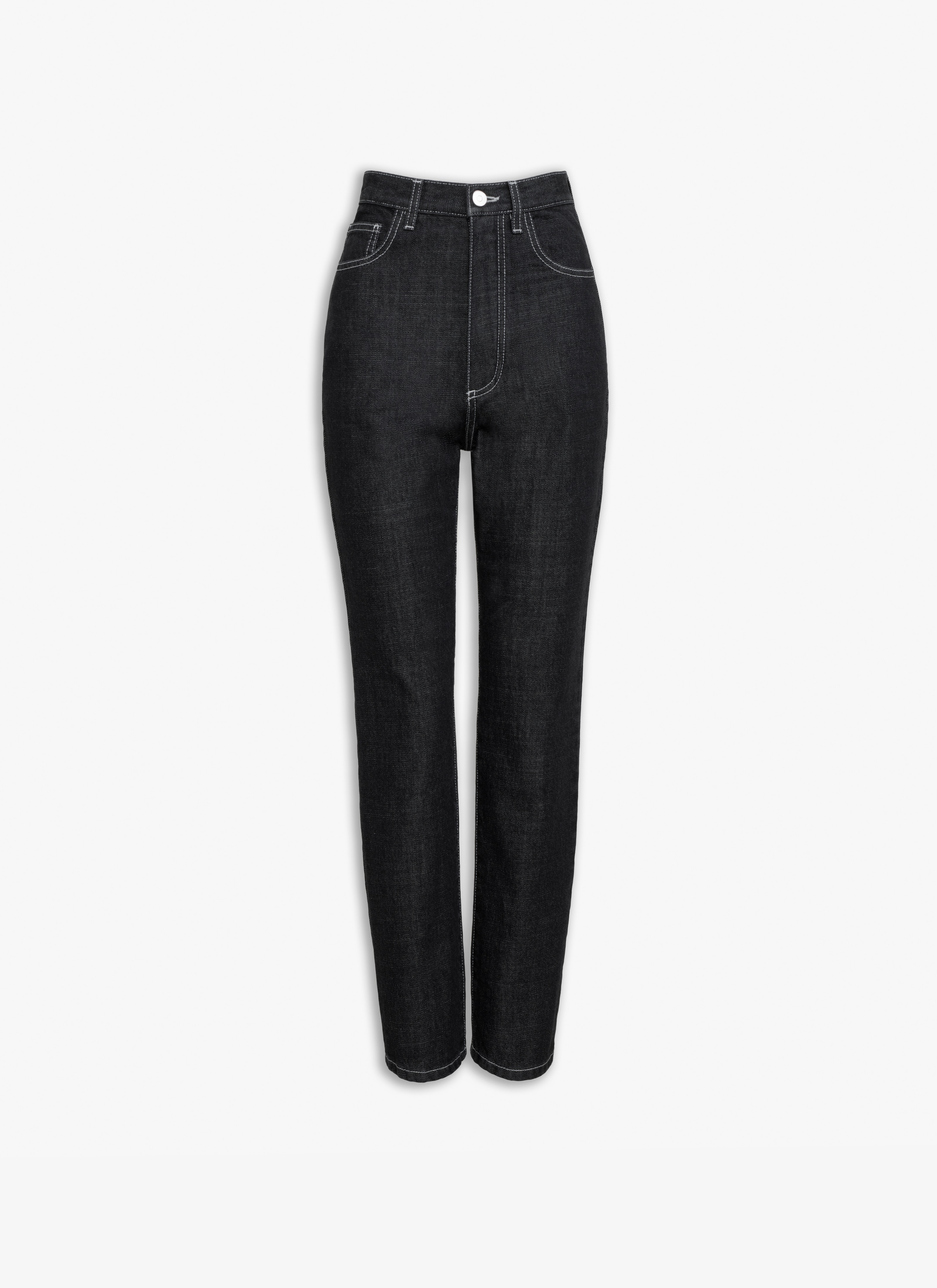 straight leg alaïa jeans carry over shape high waisted, 5 pockets signature alaïa stitches at the back made from black denim made in italy DETAILS COMPOSITION: 100% COTTON POCKET LINING: 65% POLYESTER, 35% COTTON PRODUCT REFERENCE: AA9P00755T594 - 912